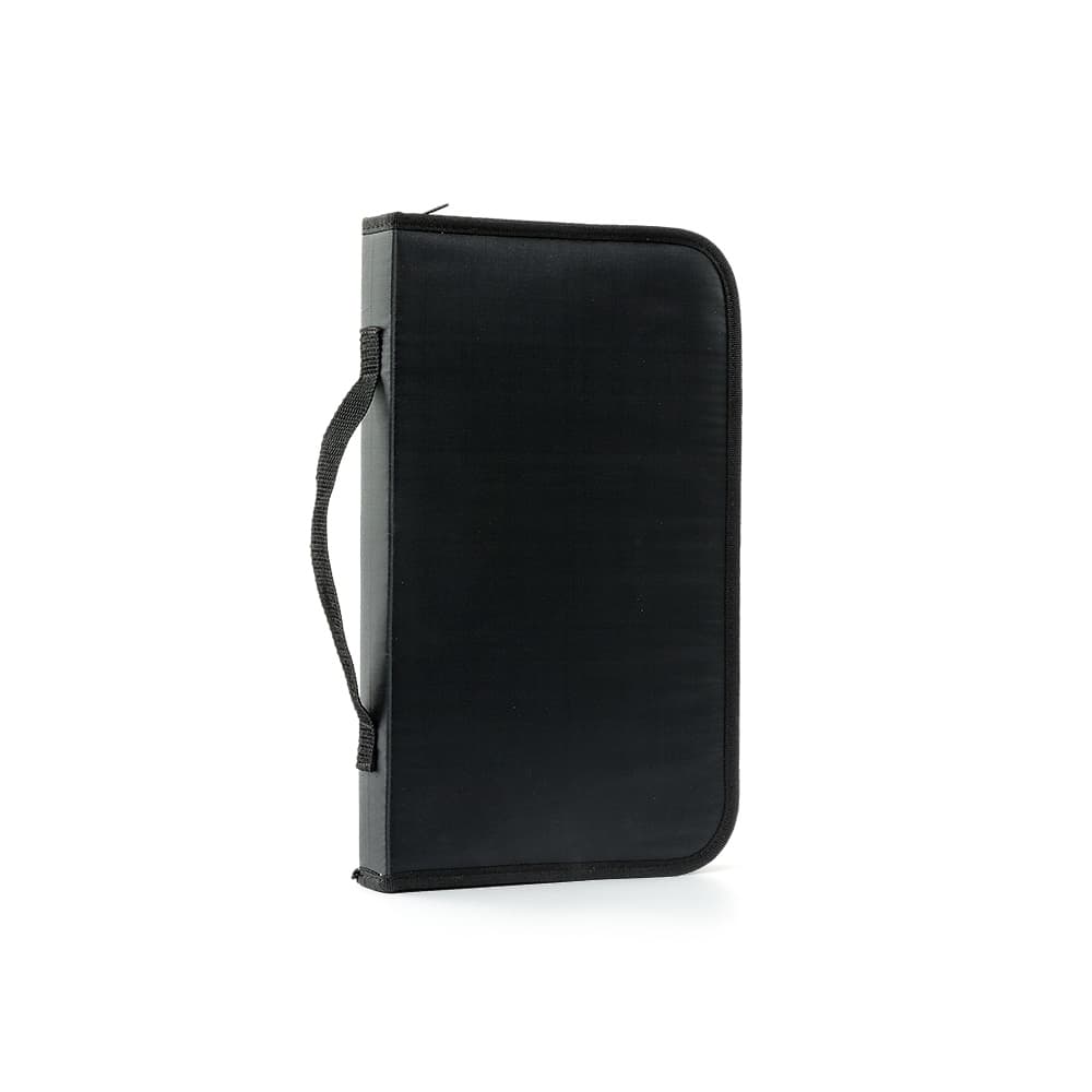 Kit churrasco 5 peças em estojo de nylon com alça e parte interna com elástico para fixar as peças. Possui tábua de madeira com canaleta, três facas de corte e tesoura.
