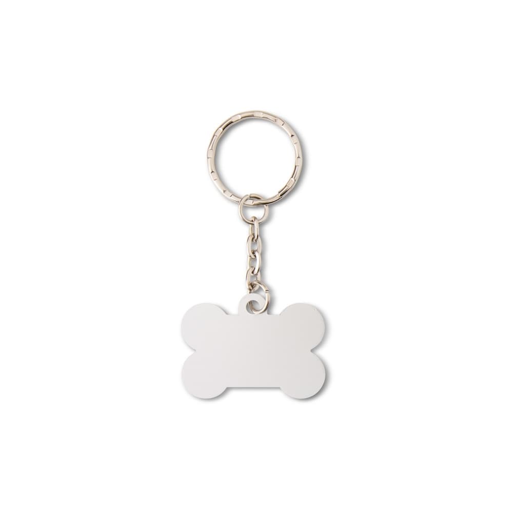 Chaveiro metálico fosco formato osso. Frente e verso liso.