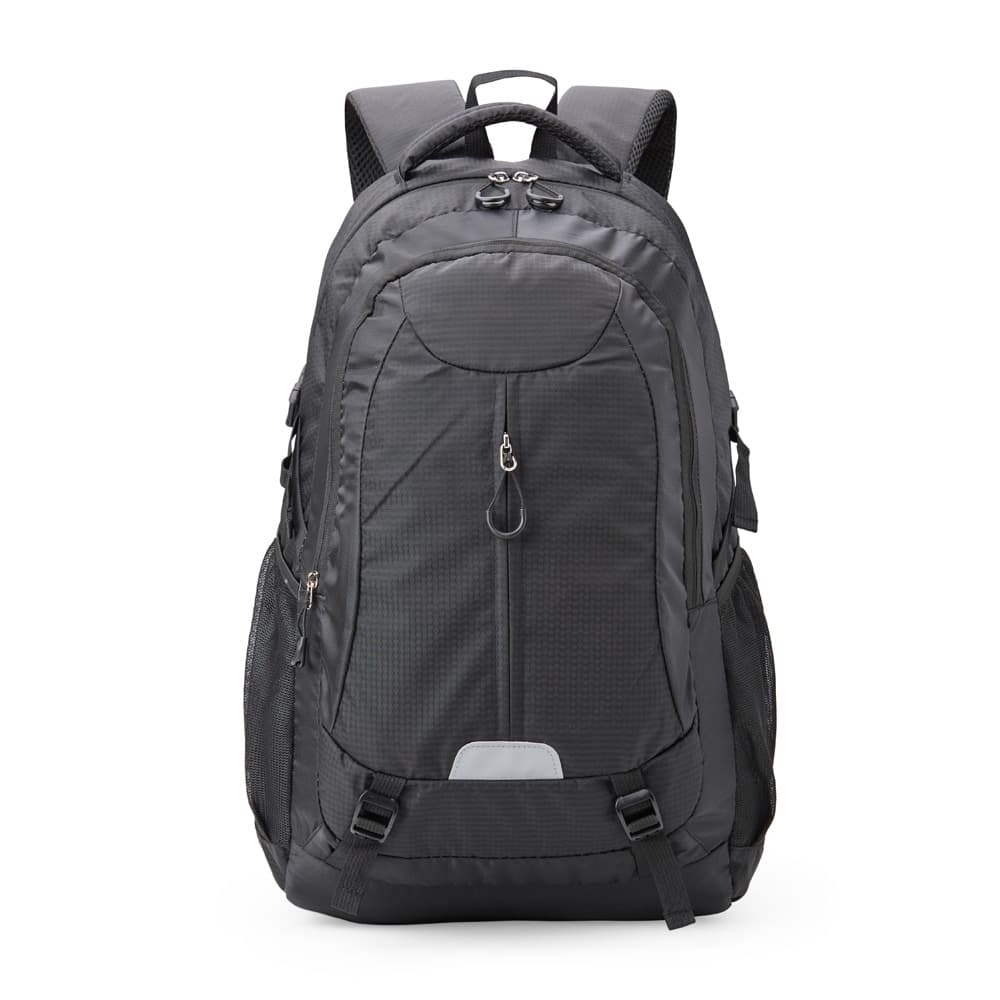 Leve tudo e mais um pouco com a nossa mochila de poliéster de 43 litros. Espaçosa e eficiente, possui três compartimentos, sendo o principal com um bolso para notebook de até 15,6 polegadas. Conta com divisórias internas para manter acessórios organizados e bolsos laterais de tela para acesso fácil aos itens essenciais. Esse modelo possui revestimento espumado nas costas para maior conforto e, para sua segurança, tem um detalhe refletivo na parte frontal, aumentando sua visibilidade em condições de pouca luz. Além disso, há um apito integrado em uma das fivelas, e as alças de compressão e compensação ajudam a distribuir o peso de forma equilibrada.