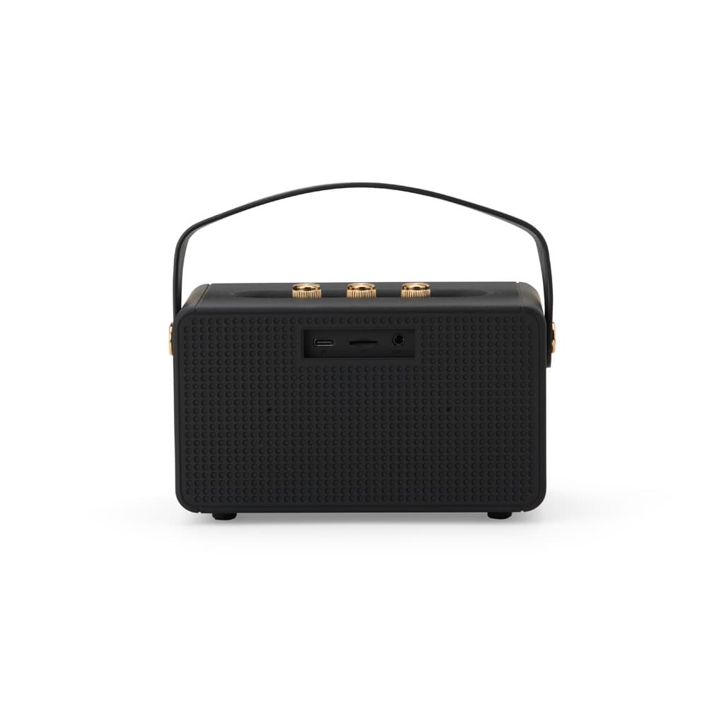 Design retrô e potência sonora! Caixa de som multimídia com tecnologia TWS. Feita em plástico resistente com classificação IPX4, esta caixa de som oferece conectividade bluetooth, rádio FM, suporte para cartão TF (MicroSD) e pen drive. Equipada com a tecnologia TWS para sincronização de duas caixas em uma, prepare-se para uma experiência sonora imersiva e potente. Com alça para transporte e pés antideslizantes, seu design versátil facilita o transporte e a transforma também em uma charmosa peça decorativa.