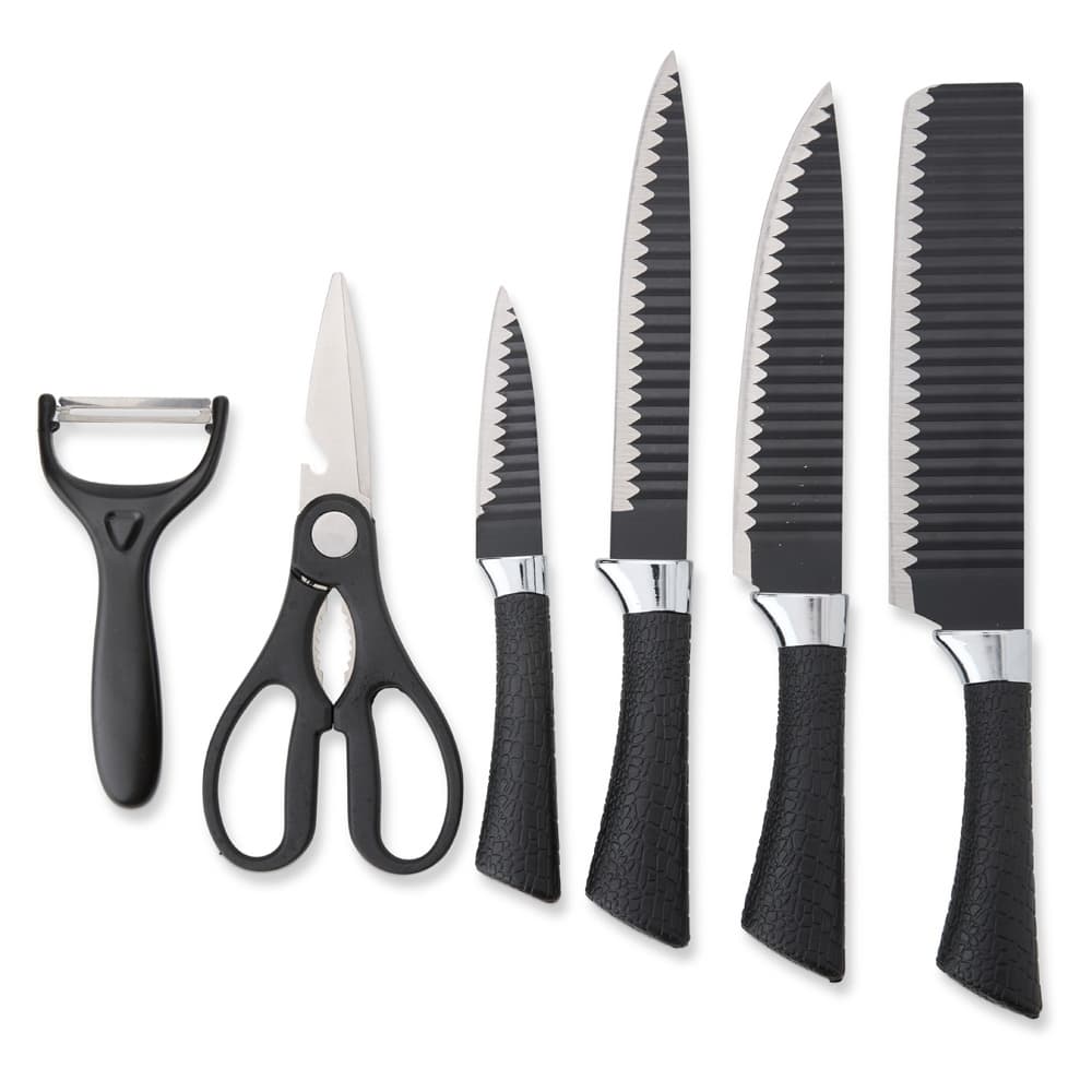 Para os amantes da culinária, nosso Kit de 6 peças é ideal para quem busca precisão e praticidade na cozinha. Com lâminas afiadas em aço inoxidável e cabos plásticos de design aderente, o conjunto oferece segurança e conforto no manuseio, incluindo uma faca de 3 polegadas e três de 6 polegadas para cortes rápidos e precisos, uma tesoura multifuncional e um descascador prático. Além disso, todas as peças vêm acondicionadas em um estojo de papelão com berço plástico e fechamento imantado para proteção dos utensílios.