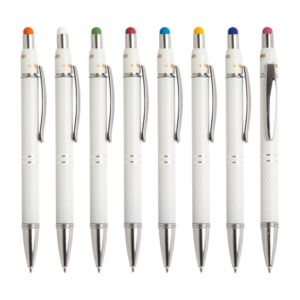 Agora temos mais um aliado para combater o estresse! Apresentamos a nossa caneta metálica touchscreen de acionamento por clique, carga esferográfica azul de 1.0mm, com um dispositivo antiestresse que funciona como um spinner e ajuda a aliviar a tensão do dia a dia. Além de cuidar da alimentação, dormir bem, ter tempo para momentos lazer, você ainda vai se desestressar ao escrever.