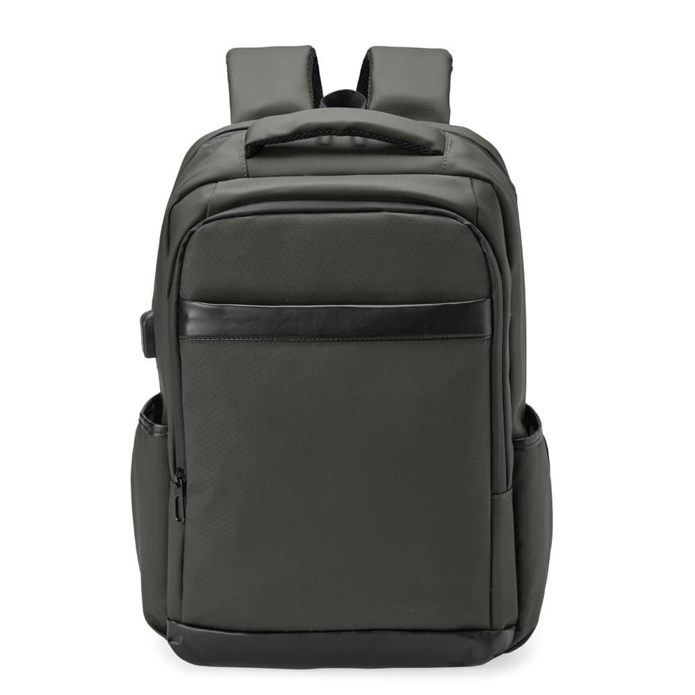 Nossa mochila de 21 litros combina funcionalidade e conforto! Feita em couro sintético resistente à água e com design inteligente, é perfeita para impressionar no mundo corporativo. Conta com quatro compartimentos estratégicos: um frontal, outro com bolsos e divisórias para documentos e canetas, um compartimento antifurto para proteger os itens mais valiosos e um principal, com espaço para notebooks de até 15,6" e entrada para cabo USB. Além disso, possui plaquinha para personalização exclusiva, dois bolsos laterais, alças reguláveis e acolchoadas que distribuem o peso de forma equilibrada, acabamentos refletivos e uma parte traseira acolchoada, garantindo mais conforto. Para completar, conta com engate para malas de viagem, sendo a parceira ideal além do dia a dia do trabalho. Acompanha plaquinha metálica personalizável.