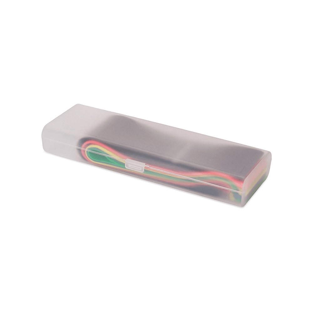 Kit com cinco faixas de borracha com diferentes níveis de resistência, oferecendo a elasticidade ideal para a prática de diversos tipos de atividades físicas. O conjunto acompanha um estojo plástico para guardar as faixas.