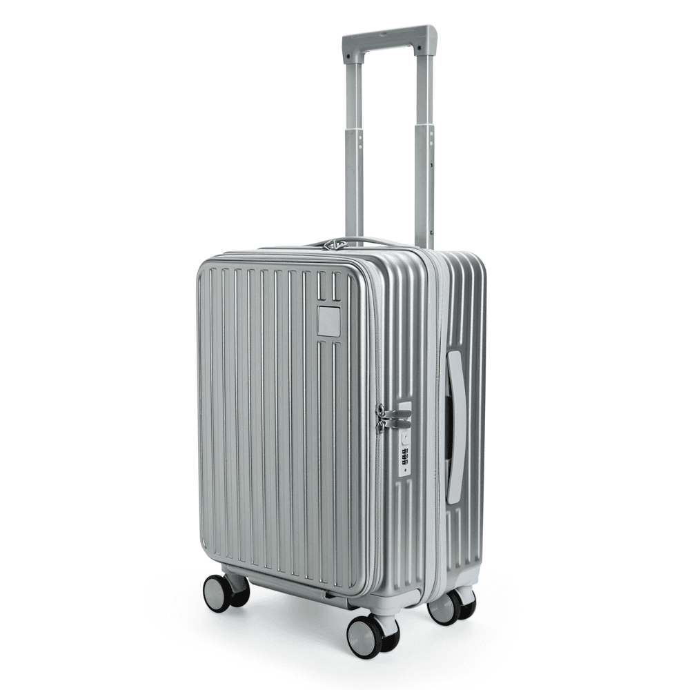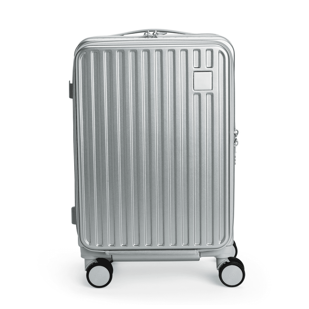 Mala de viagem feita em policarbonato (PC) com capacidade de até 32 litros. Apresenta compartimentos internos de difernetes tamanhos, incluindo um bolso telado e outro em plástico para itens molhados, além de cinta compressora no lado oposto. Possui alça superior, alça lateral, puxador retrátil ajustável em dois níveis, quatro rodinhas com rotação de 360 graus, suporte para copo ou garrafa, quatro apoios laterais e cadeado numérico TSA. Dispõe ainda de compartimento frontal com três bolsos em tamanhos variados.