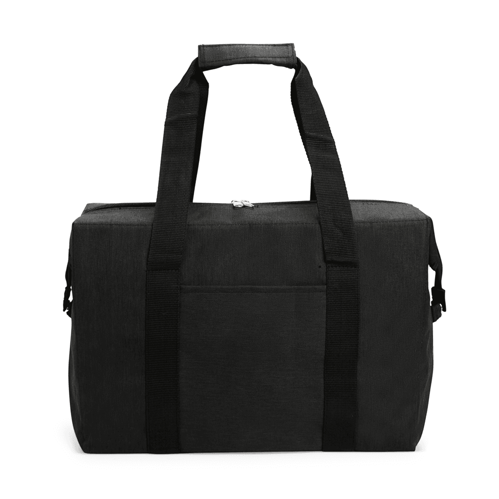 Bolsa térmica confeccionada em Oxford resistente à água, fechamento em zíper e capacidade de até 20 litros. Possui revestimento térmico interno em folha de alumínio, botões laterais de metal para junção, bolso externo e alças de mão em nylon com suporte de união por velcro.