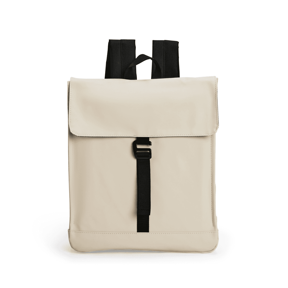 Mochila em couro sintético impermeável com capacidade de até 13 litros. Apresenta compartimento interno com bolso para notebooks de até 13 polegadas. Possui duas alças para as costas, alça de mão e engate posterior para mala de viagem.