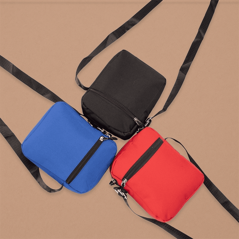 Mini bolsa confeccionada em tecido Oxford resistente à água e alça transversal ajustável em nylon. Possui fechamento em zíper e bolso frontal que facilita a organização de objetos.