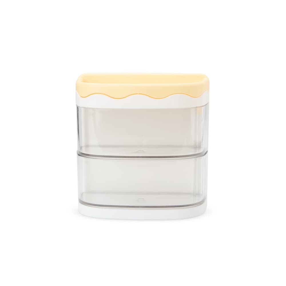 Deixe o espaço da mesa de estudo ou trabalho mais organizado, bonito e prático! Feito em plástico e acrílico, o organizador combina funcionalidade e um toque de beleza. Conta com 2 compartimentos versáteis para lápis, pincéis de maquiagem, canetinhas coloridas ou o que mais desejar, além de um espaço raso para itens como borracha e outros acessórios. Também possui 2 gavetas para objetos diversos, como cola, clipes, mini grampeadores e muito mais. Com este organizador de mesa, é possível usar a criatividade para organizar e decorar.