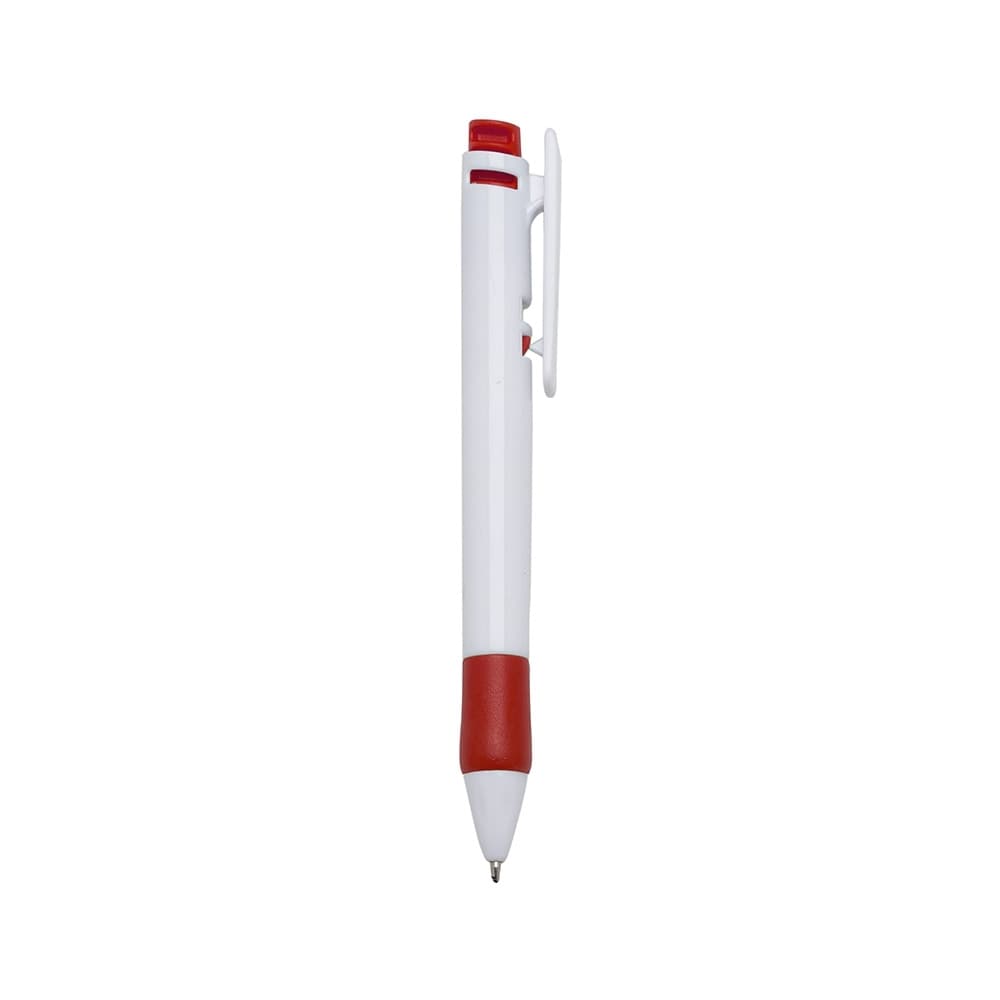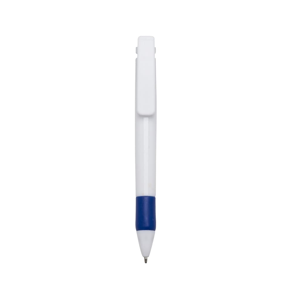 Caneta plástica com carga esferográfica azul 1.0 mm e acionamento por clique.
