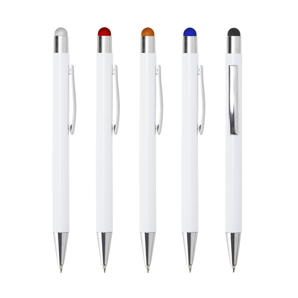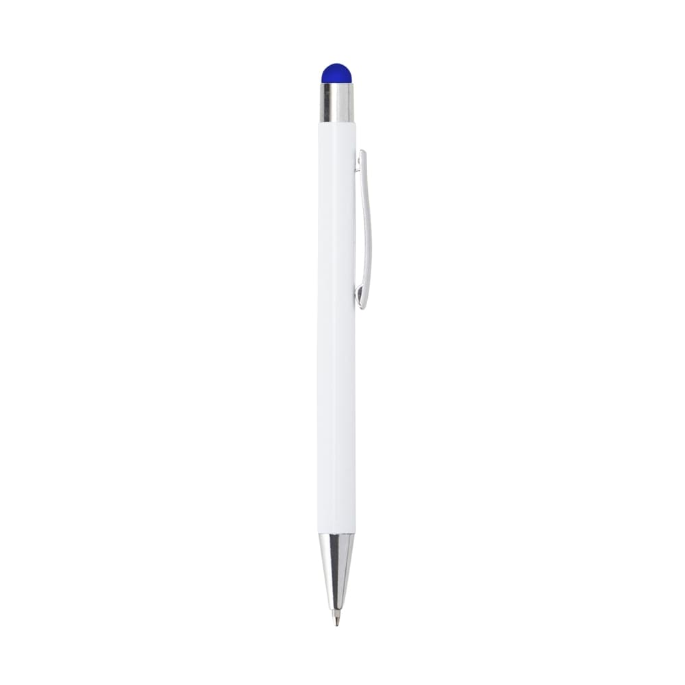 Caneta metálica touchscreen com carga esferográfica azul 1.0mm e acionamento por clique.