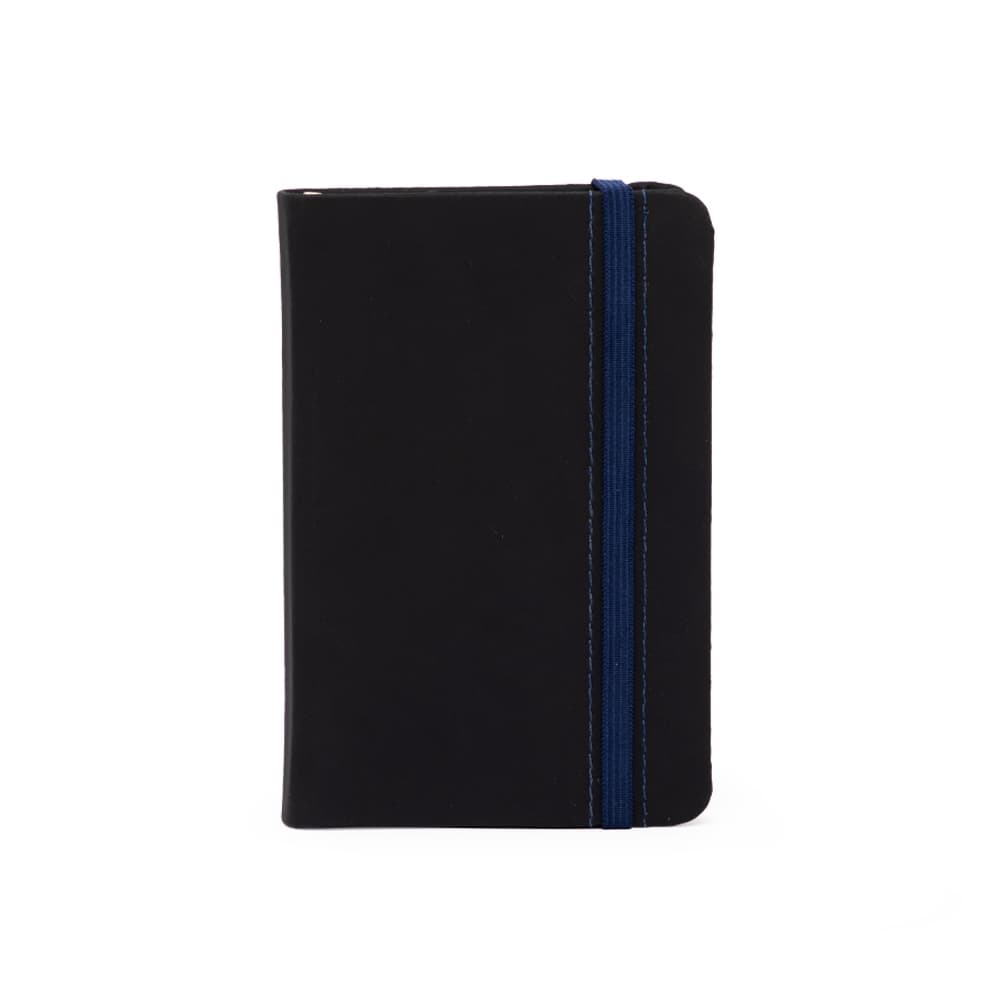 Caderneta emborrachada com marcador de página em cetim e fita elástica de nylon para fechar. Contém aproximadamente 78 folhas marfim pautadas.