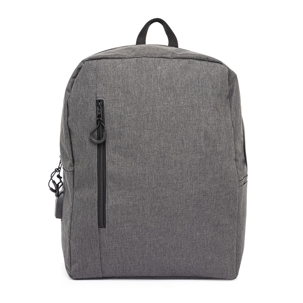 Mochila de nylon 23 litros com dois compartimentos, sendo o principal com bolso para notebook 15,6. A mochila possui bolso lateral, suporte externo para USB e adaptador P2.