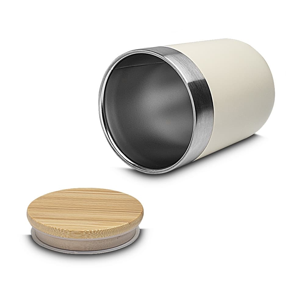 Bebidas geladas por mais tempo neste copo térmico, com capacidade de 300ml, feito em inox, com parede dupla e tampa de bambu que possui um anel de silicone para vedação. Seu design e pintura fosca são o toque de modernidade que você procura.