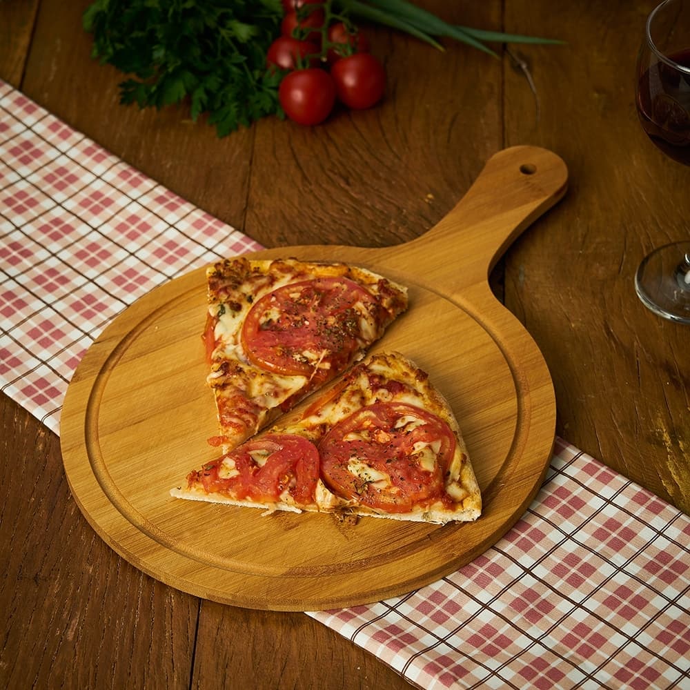 Tábua de bambu grande com canaleta e cabo.