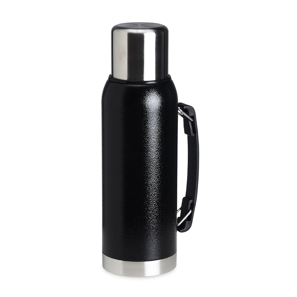 Garrafa térmica de inox livre de BPA com capacidade de 1 litro. Contém alça para transporte.