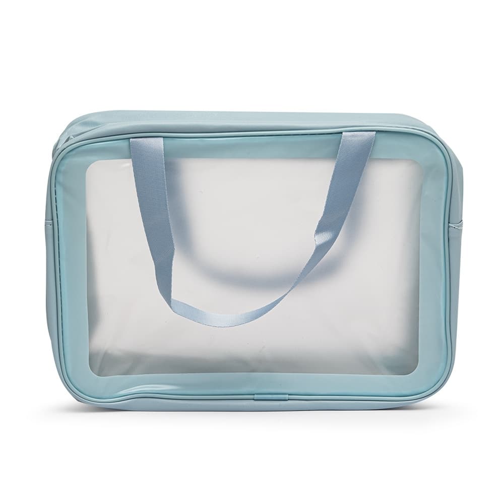 Nécessaire de PVC e PU resistente à água, com duas alças laterais de mão.
