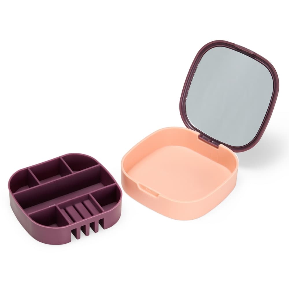 Nosso Porta-jóias organiza seus acessórios de forma prática e compacta. Produzido em plástico, é a escolha ideal para manter anéis, brincos, batom e pulseiras sempre acessíveis. Com 7 compartimentos estratégicos para guardar tudo, feitos em material macio e emborrachado, removíveis para facilitar a limpeza, ele também conta com um espelho na tampa, facilitando na hora de montar looks com as jóias. Perfeito para quem valoriza organização, autocuidado e praticidade no dia a dia.