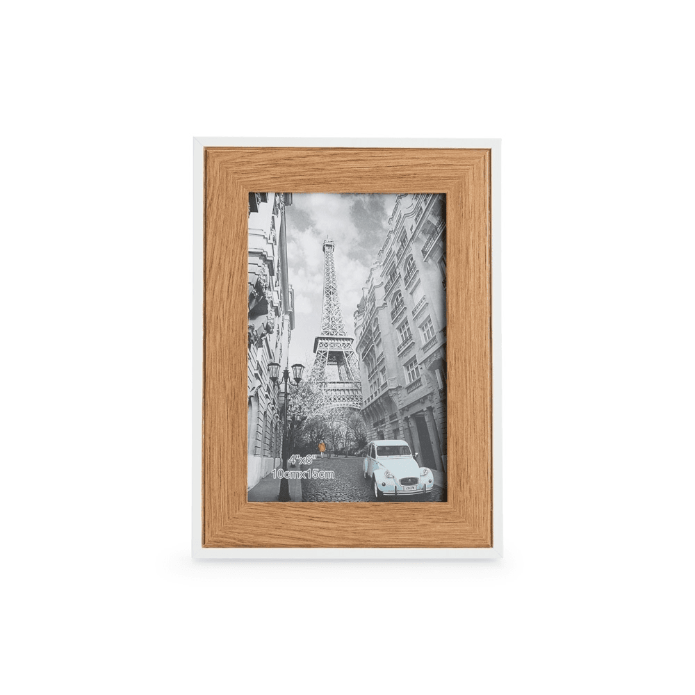 Porta-retratos para fotos 10 x 15, ideal para uso na vertical ou na horizontal. Possui moldura e fundo em MDF, visor em folha de acetato e travas metálicas.