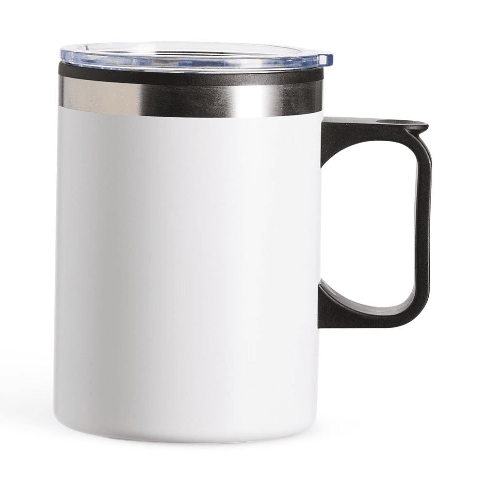 Caneca plástica com capacidade de até 375ml e revestimento externo em inox que reduz o contato direto com a temperatura dos líquidos. Conta com tampa plástica com bocal e trava de segurança, além de base emborrachada antiderrapante.