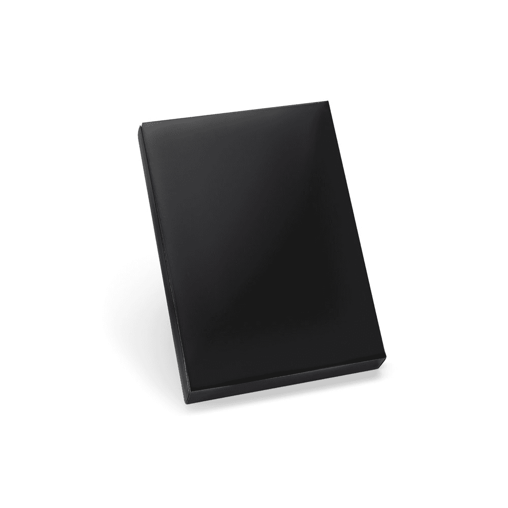 Pasta A5 em c. sintético com bateria portátil embutida (lítio). A bateria tem capacidade para 4.000 mAh, tempo de vida ≥ 500 ciclos com entrada/saída 5V/1A e cabo USB-C para carregar a bateria. No interior, contém um caderno removível com 128 páginas pautadas de cor marfim, um suporte para esferográfica (não inclusa), elásticos para organização e suporte para smartphone. No exterior, uma placa com acabamento emborrachado, LED interior e botão on/off. Fornecida em caixa presente. 165 x 225 x 25 mm | Placa: 55 x 35 mm | Caixa: 180 x 240 x 35 mm