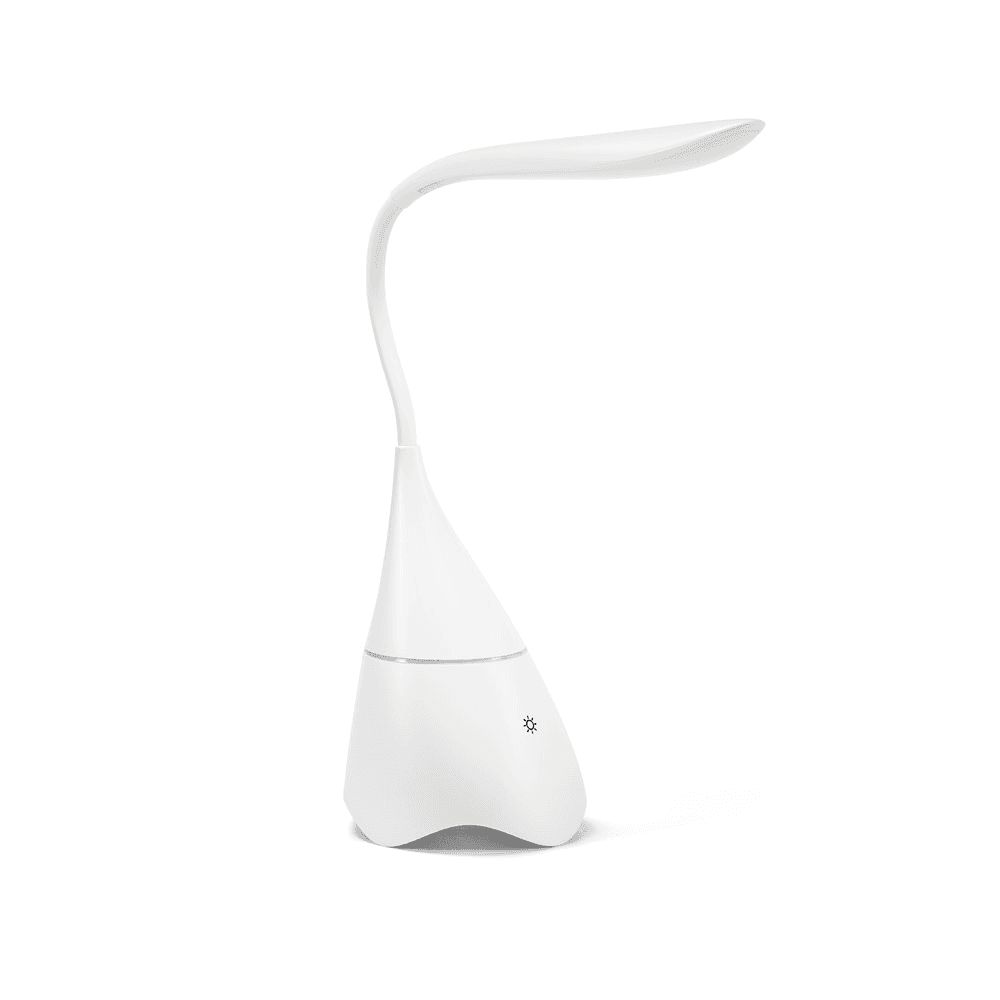 Luminária de mesa com caixa de som em ABS com 18 LEDs de alto brilho, botão tátil e braço flexível. Transmissão sem fios BT v4.2 e ligação stereo 3,5 mm com 5W/4Ω. Autonomia aproximada 6 horas. Permite a conexão à playlist do dispositivo móvel. Incluso cabo USB-C para carregar. Fornecida em caixa presente. 100 x 225 x 100 mm | Caixa: 110 x 235 x 105 mm