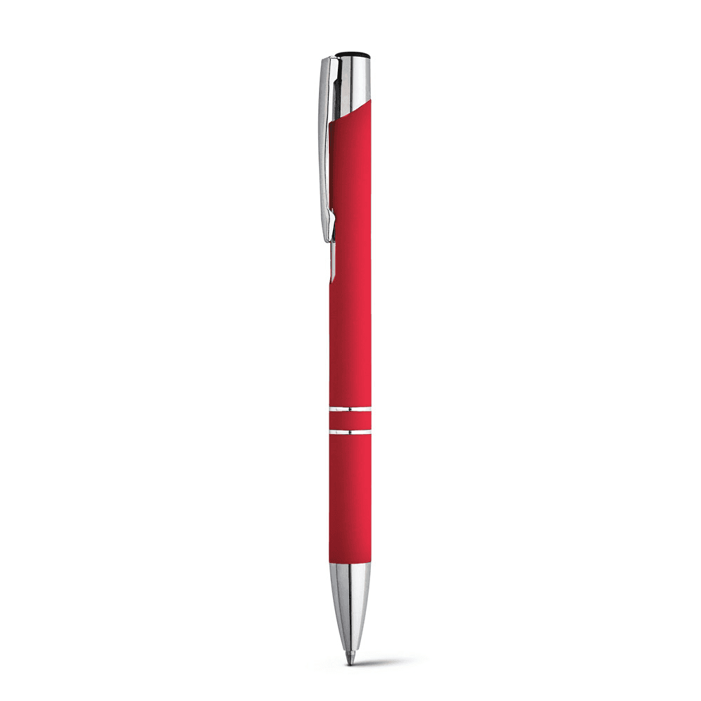 81141 BETA SOFT. Esferográfica em alumínio com acabamento emborrachado e escrita em preto