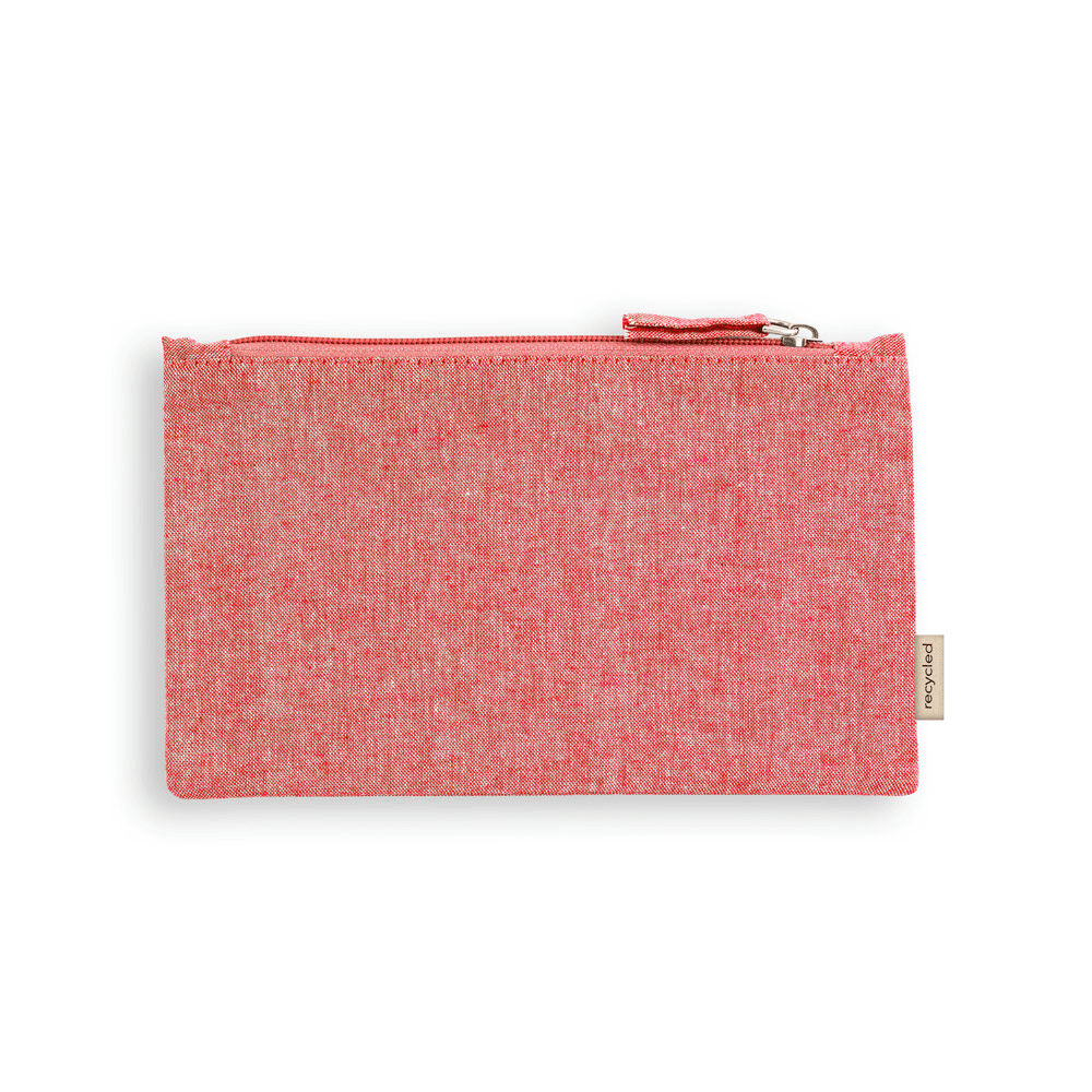 Bolsa multifunções em 70% algodão reciclado e 30% poliéster reciclado (140 g/m²). Interior com forro 100% algodão. 225 x 120 mm