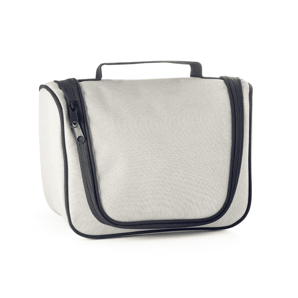 Bolsa de cosméticos em 600D de alta densidade. O compartimento principal tem zíper duplo e revestimento interior em 210D. Contém vários bolsos interiores e gancho no topo para pendurar. 230 x 180 x 105 mm