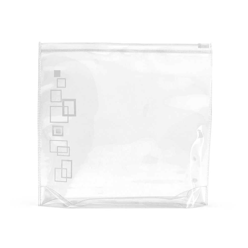 Bolsa de cosméticos hermética em PVC. Apropriada para transporte em cabine de avião. Frascos não inclusos. 165 x 185 x 40 mm | Capacidade < 1 Litro