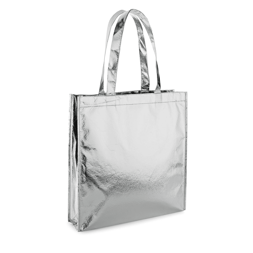 Sacola em non-woven laminado (90 g/m²) com alças de 50 cm e com laminação brilhante. 340 x 350 x 80 mm