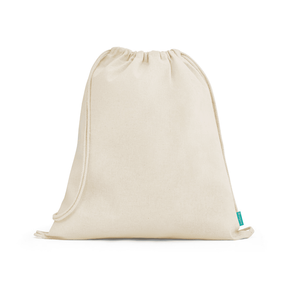 Sacola tipo mochila 100% algodão orgânico (120 g/m²) com alças. Proveniente de um cultivo sustentável, sem químicos ou pesticidas e Label Organic. 370 x 410 mm