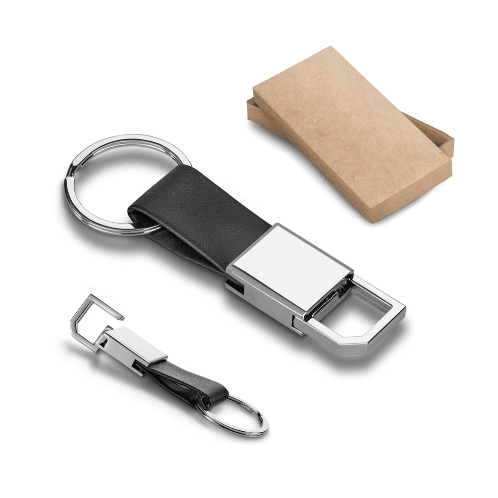 Chaveiro em c. sintético e metal com mosquetão. Fornecido em caixa presente de papel kraft reciclado. 21 x 77 x 8 mm