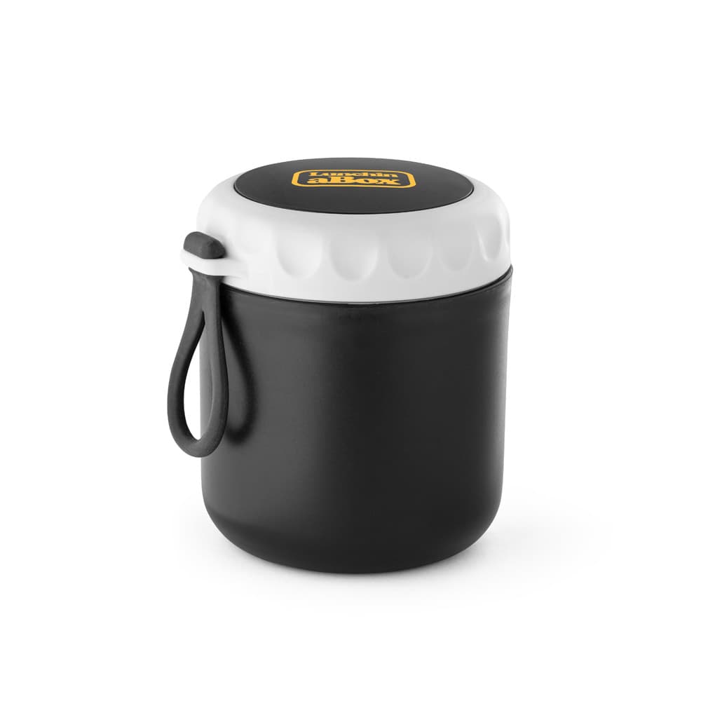 Recipiente térmico em PP com parede dupla. Com pega para transporte em silicone, ideal para refeições. Capacidade até 380 mL. Certificação EU Food Grade. 90 x 105 mm