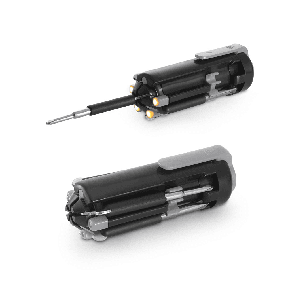 Conjunto de ferramentas em ABS com clipe, 6 LEDs e 5 pontas diferentes removíveis. Incluso 2 pilhas AAA. 90 x 30 x 35 mm