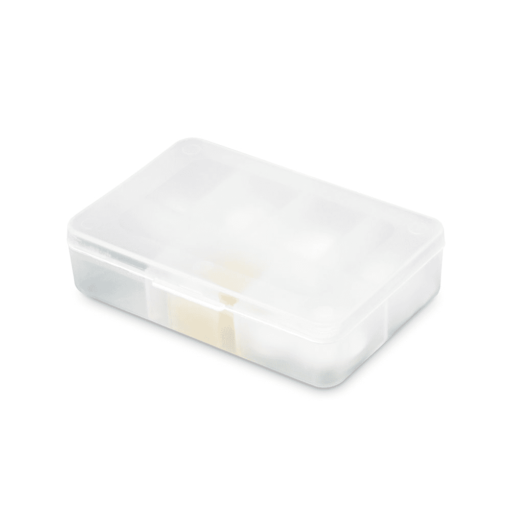 Porta comprimidos com tampa e 7 divisórias, ideal para separar pelos dias da semana. Certificação EU Food Grade. 85 x 55 x 20 mm