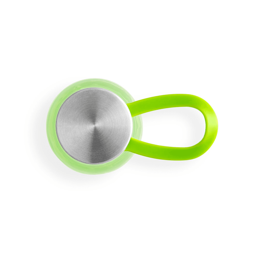 Squeeze em PET 100% reciclado com alça de silicone para facilitar o transporte. A tampa em PP e aço inox possui isolante em silicone. Capacidade até 590 mL. Caixa branca 94651 vendida opcionalmente. Certificação EU Food Grade. ø66 x 230 mm