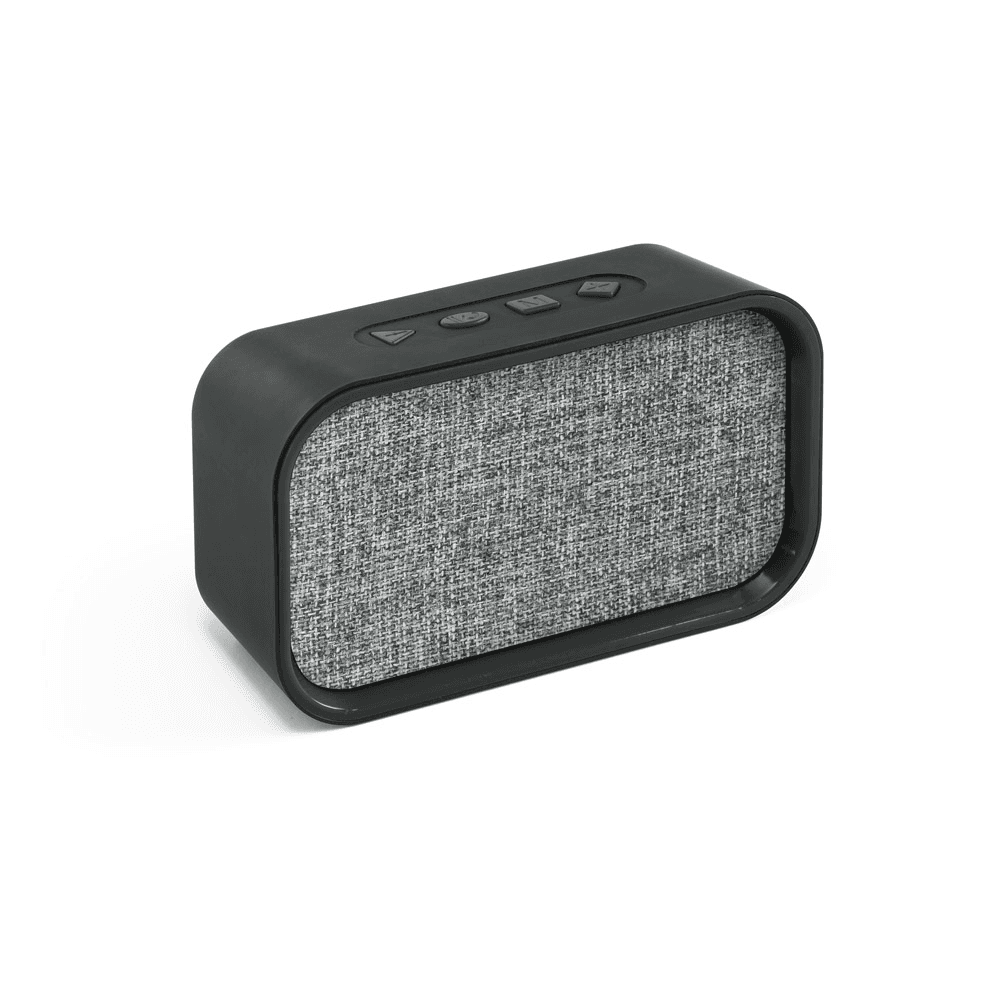 Caixa de som portátil com microfone, em ABS, tecido em poliéster e acabamento emborrachado. Possui transmissão sem fios BT v4.2, potência de 3W/4Ω, ligação stereo 3,5 mm, leitor de cartões TF. A coluna tem autonomia, aproximada, de 2h. Função para atender chamadas, controle de volume, conexão à playlist do dispositivo móvel e rádio FM. Incluso cabo USB para carregar. Fornecida em caixa presente. 140 x 80 x 45 mm | Caixa: 160 x 82 x 60 mm
