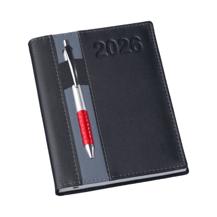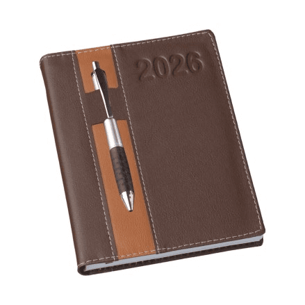 Agenda Diária Capa Vertical - Capa: Couro Sintético 0,6mm - Miolo de Agenda Diária - 2x2 Cores - 344 páginas - Off-set 63g com Mapa 4x4 Cores - Índice Telefônico - Planejamento - Formato da Agenda: 145x200mm