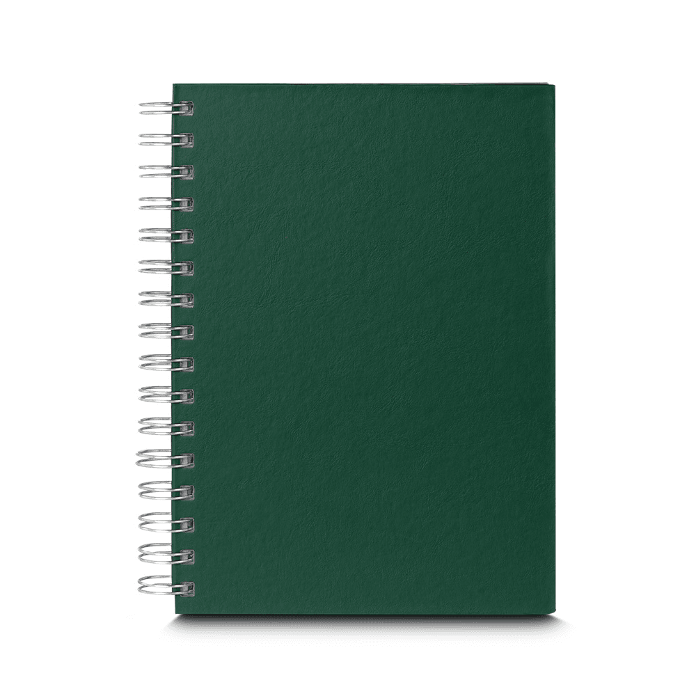 Caderno capa dura em percalux com 100 folhas, sendo elas 7 páginas iniciais com área para dados pessoais, calendário 2024/2025/2026, planejamento anual e trimestral.