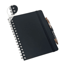 Caderneta Tipo Moleskine Grande em Wire-o com Suporte de Caneta Com Pauta LG3787 - Brindes Caxias