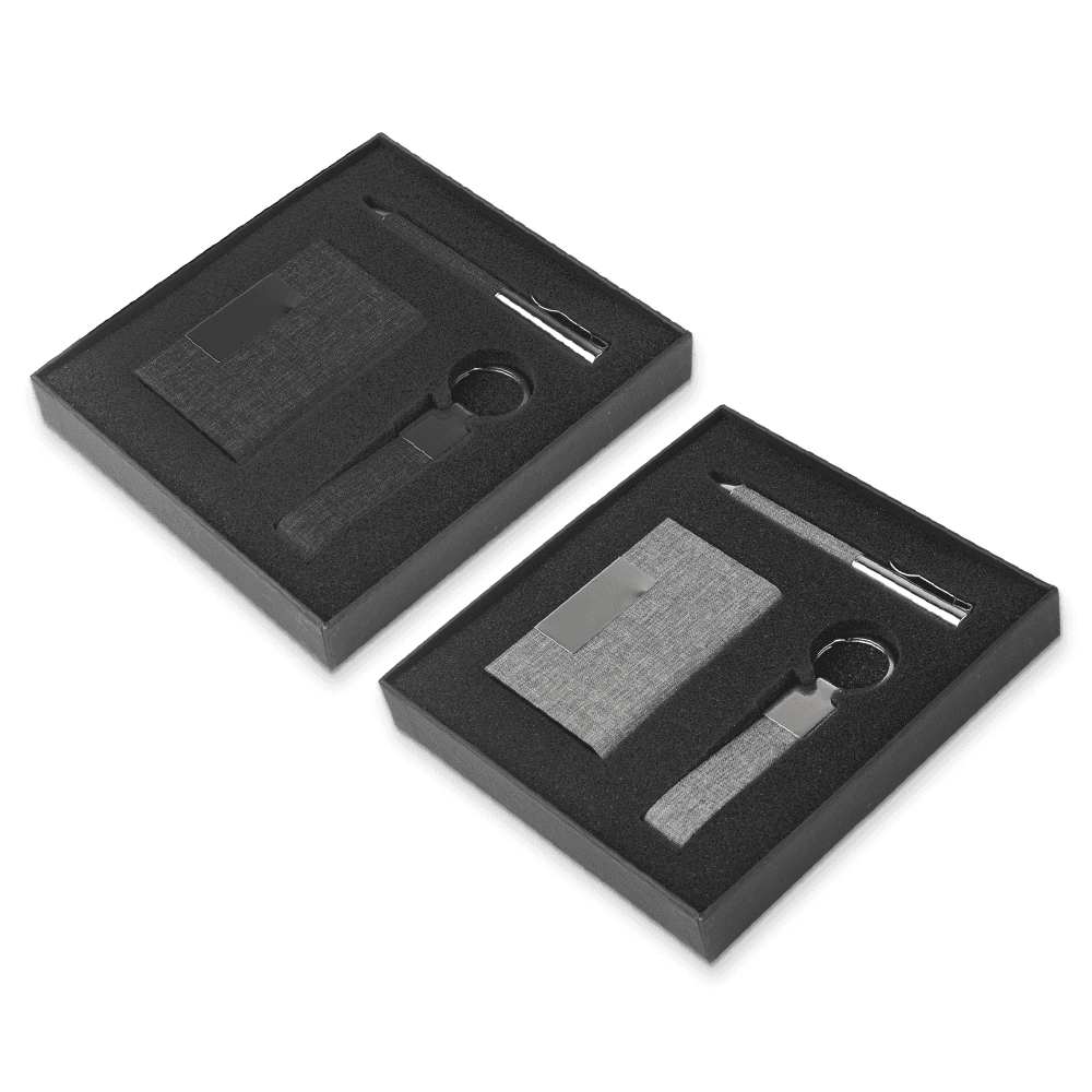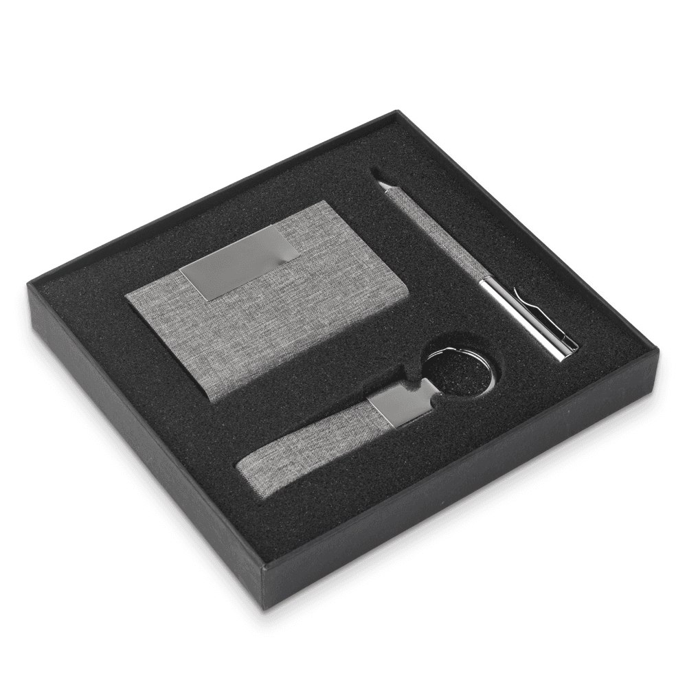 1 Chaveiro em metal com detalhe em RPET reciclável;