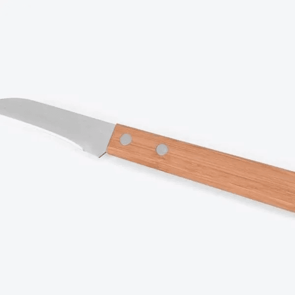 Conjunto de faca composto por faca 7'' e faca 3" para legumes em Bambu/Inox. Acompanha também faca 4" para frutas em Madeira/Inox. Como cortesia, na faca 7" fazemos uma gravação com os cortes do boi.