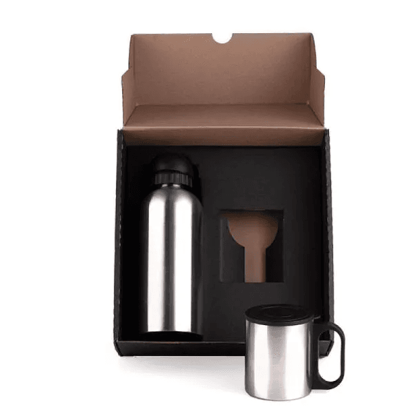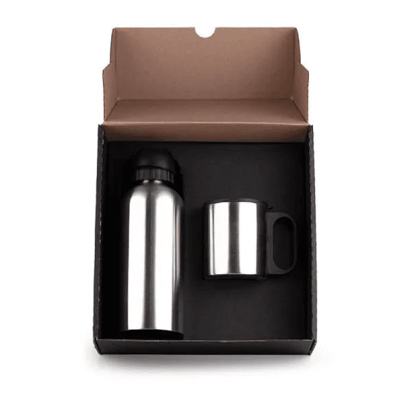 Conj. De Garrafa E Caneca Em Aço Inox 600/180 Ml - 2 Pçs IX-01611 - Brindes Caxias