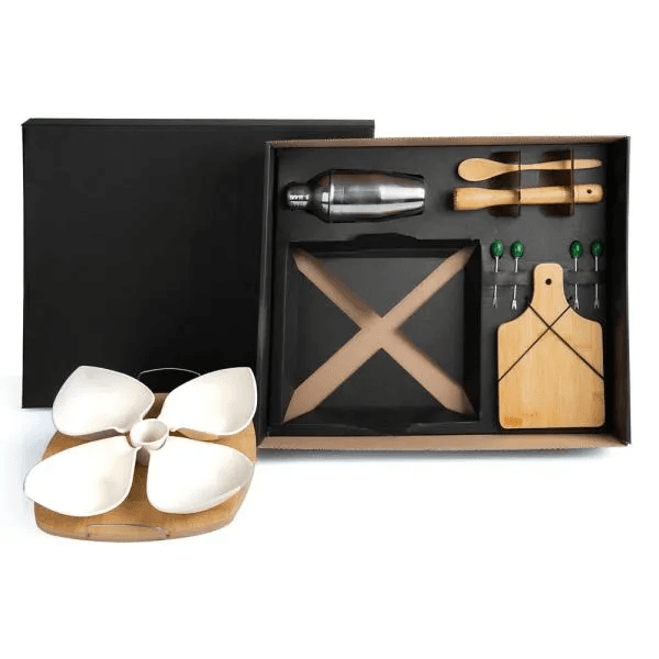 Conjunto para caipirinha com petisqueira, coqueteleira, tábua e utensílios