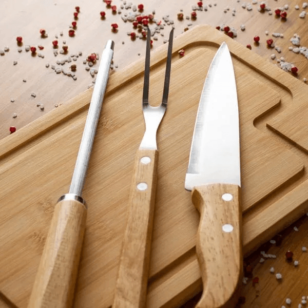 Conj. Para Churrasco Em Bambu / Inox / Madeira - 4 Pçs MX-19266