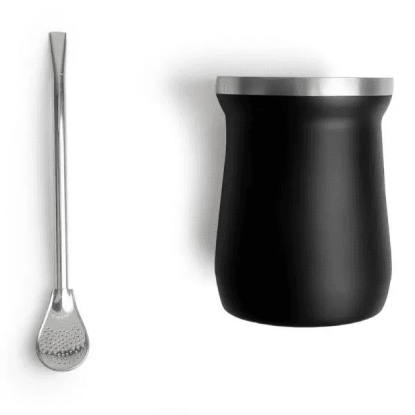 Cuia Térmica Em Aço Inox Com Bomba - Preto - 300Ml IG-03321