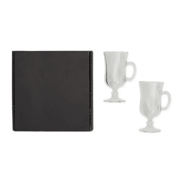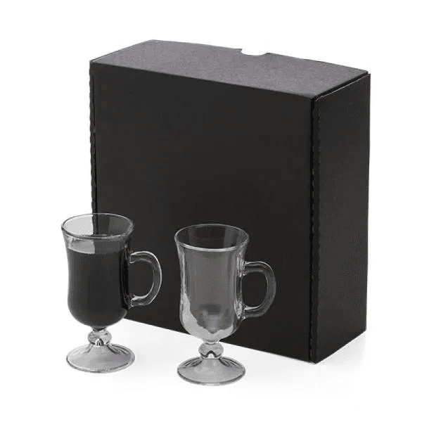 Jogo com 2 canecas de vidro para café. Capacidade: 130ml cada