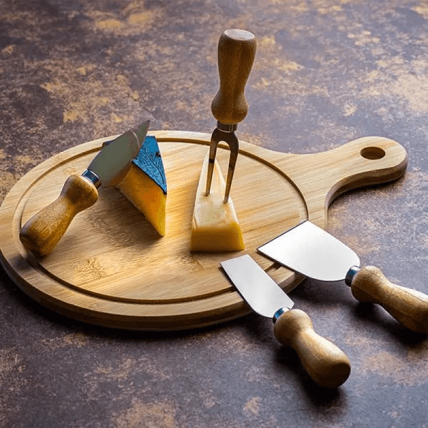 Kit Para Queijo Em Bambu / Madeira / Inox - 5 Pçs KT-90100 - Brindes Caxias