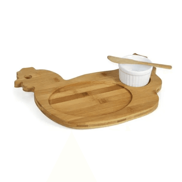 Kit Petisco Em Bambu / Porcelana Com Tábua Formato Galinha PD-41333